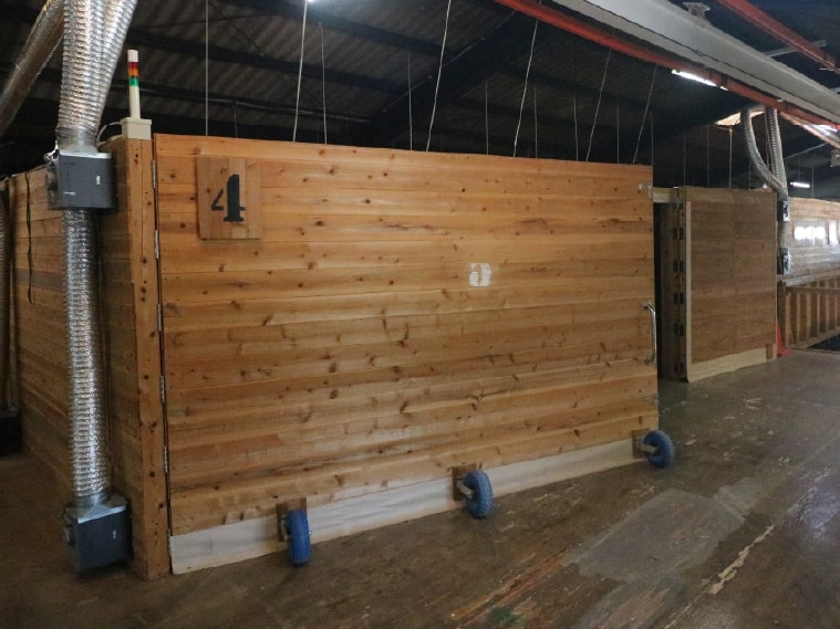 急激に乾燥させると木材に反りが発生する為、一定の温度で時間をかけて乾燥させる事が必要です。